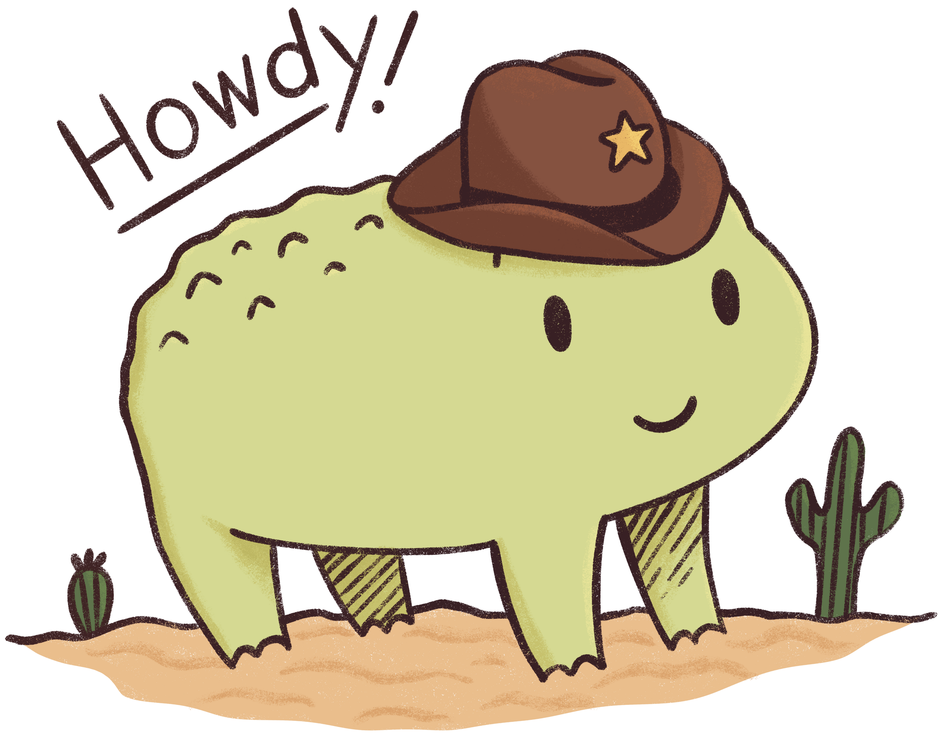Meet Tomothy! He’s a young toad who had always dreamed of being an American cowboy. One day, he decided to hop on a plane and fly to Hollywood to pursue his dream. When he arrived, he ran into a friendly shark named Shark Mom and her son, Small Fry, who were handing out flyers for auditions. He asked her where he could find cowboy auditions, and she said she had the perfect role for him in a commercial she was working on. He was thrilled. He walked into the green room and gave them his best cowboy acting. The room fell silent for a moment, and then someone yelled, "He's perfect!" He had landed the supporting role alongside Small Fry in a commercial about baked beans. After filming, they became inseparable. Shark Mom and Small Fry were like family to Tomothy. He decided to stay with them as he pursued his acting career.