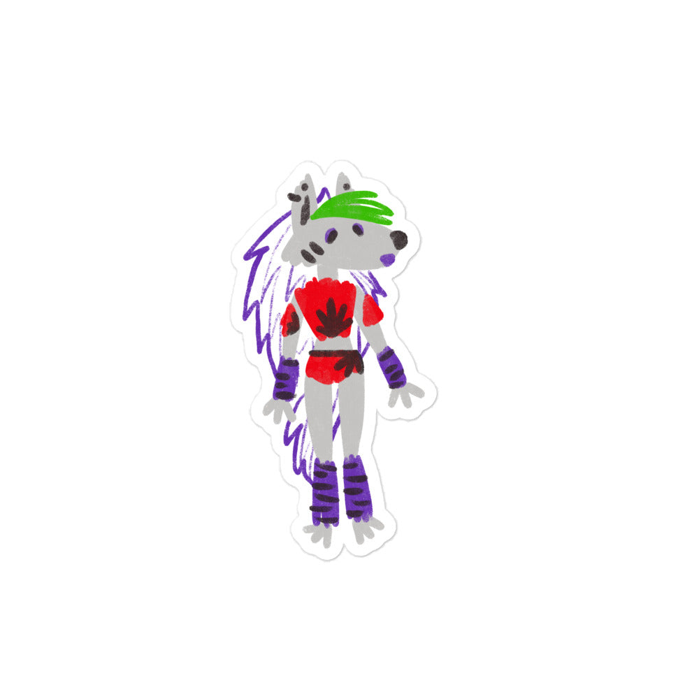 Adorn your belongings with Roxy, a vibrant crayon drawing sticker that bursts with lively colors, showcasing a playful and imaginative character. Perfect for adding a touch of whimsy to any surface, Roxy is sure to bring a smile wherever you stick her.