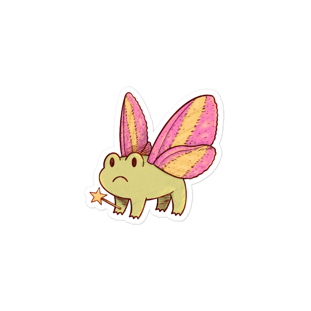 Featuring a whimsical fairy frog with rosy maple moth wings and a sparkling wand, this charming sticker is perfect for nature and fantasy lovers. Made from durable, vinyl material, it’s great for decorating your laptop, water bottle, or any surface that needs a touch of magic.