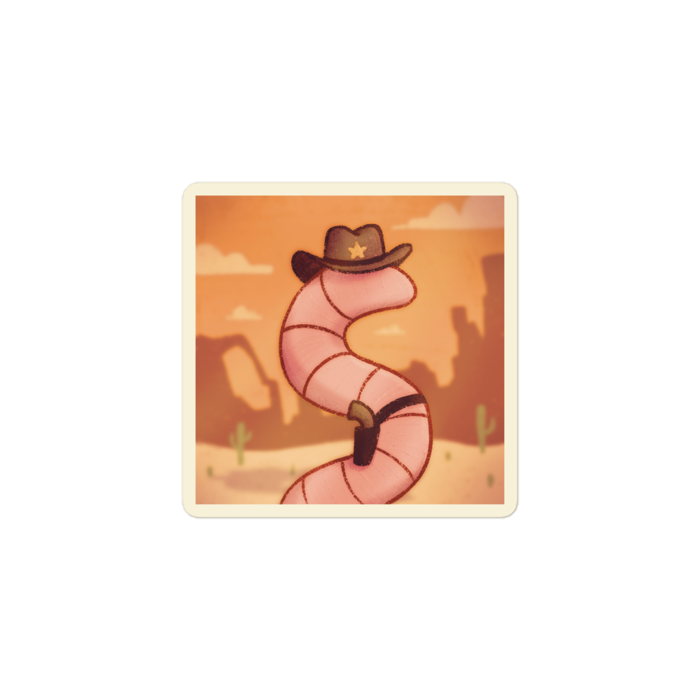 Meet Sheriff McSquirmin’ – the wiggliest worm in the west, ready to bring western charm to your gear! This fun, durable sticker is perfect for adding a quirky touch to your laptop, water bottle, or anywhere else that needs a little sheriff.